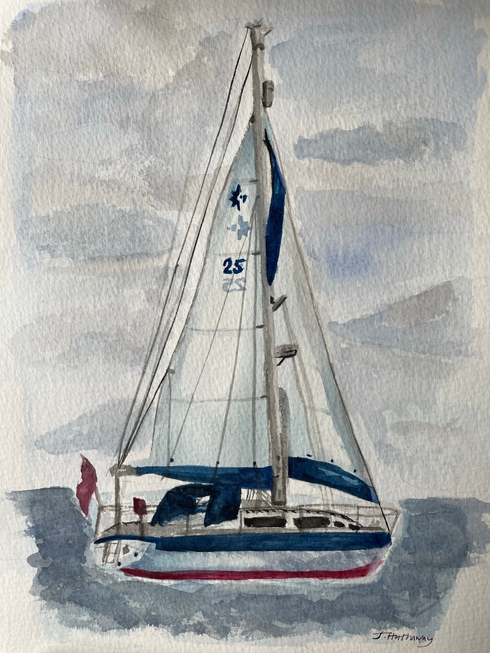 In the event I had a cracking sail back. A broad reach in a Force 4 wind gave me an average speed of 6 knots over the 67 nautical miles.