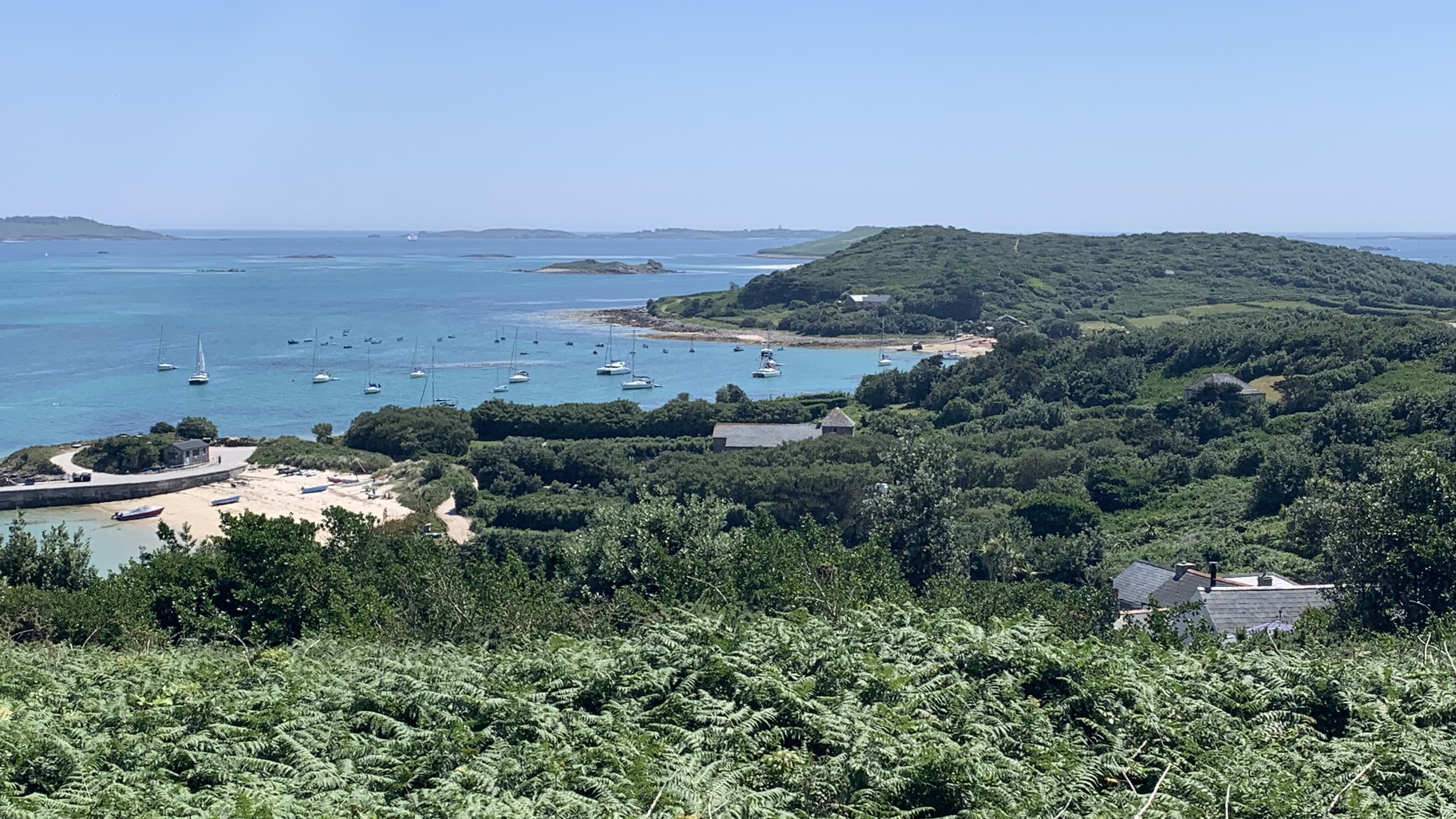 I threaded my way past jagged rocks to Schull (pronounced school) which was a busy sailing location but did not tempt me to stay. It was then a fun windy sail across the aptly named Roaring Water Bay between the rocky Calf Islands and inside Clear Island before entering Baltimore Harbour, where this time I anchored off Sherkin Island. This was such a surprisingly beautiful island to visit and is a home to artists of all disciplines. Yet again I had settled weather while there, so a chance to fly the drone and capture a glimpse of a wider perspective on the landscape.